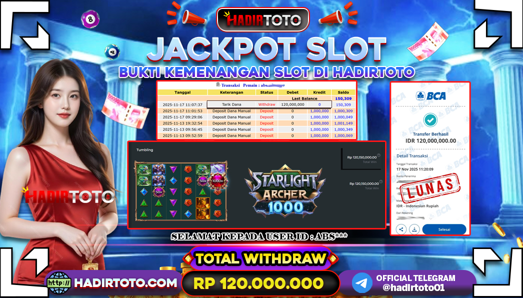 Selamat Kepada Member 𓆩♕𓆪 HADIRTOTO 𓆩♕𓆪 Yang Telah Berhasil Meraih Kemenangan dengan ID : ABS*** di permainan SLOT Starlight Archer 1000 dengan kemenengan sebesar Rp.120.000.000 , Setelah mengisi formulir withdraw dengan kurung waktu hanya 5 – 10 menit pihak hadirtoto sudah melakukan transfer kepada pemilik Userid dan dana sudah dapat di cairkan oleh pemenang. Bukti pembayaran yang kami berikan merupakan bukti pembayaran yang SAH / VALID yang langung di dapatkan melalui tanda transfer transaksi dari Bank yang di tuju. Kami mengucapakan banyak Terima Kasih Kepada pemenang karena sudah mempercayakan kami sebagai Bandar Tepercaya yang membayar semua kemenangan member hingga lunas. Masih ragu dengan hadirtoto kak ? Di mana bandar togel online sekarang yang terpercaya seperti hadirtoto? Bandar yang mengirimkan kemenangan member tanpa bertele – tele. Jadi…. tidak perlu khawatir pada situs hadirtoto karena kemenangan anda berapapun akan dibayarakan hingga lunas kepada pemenang.